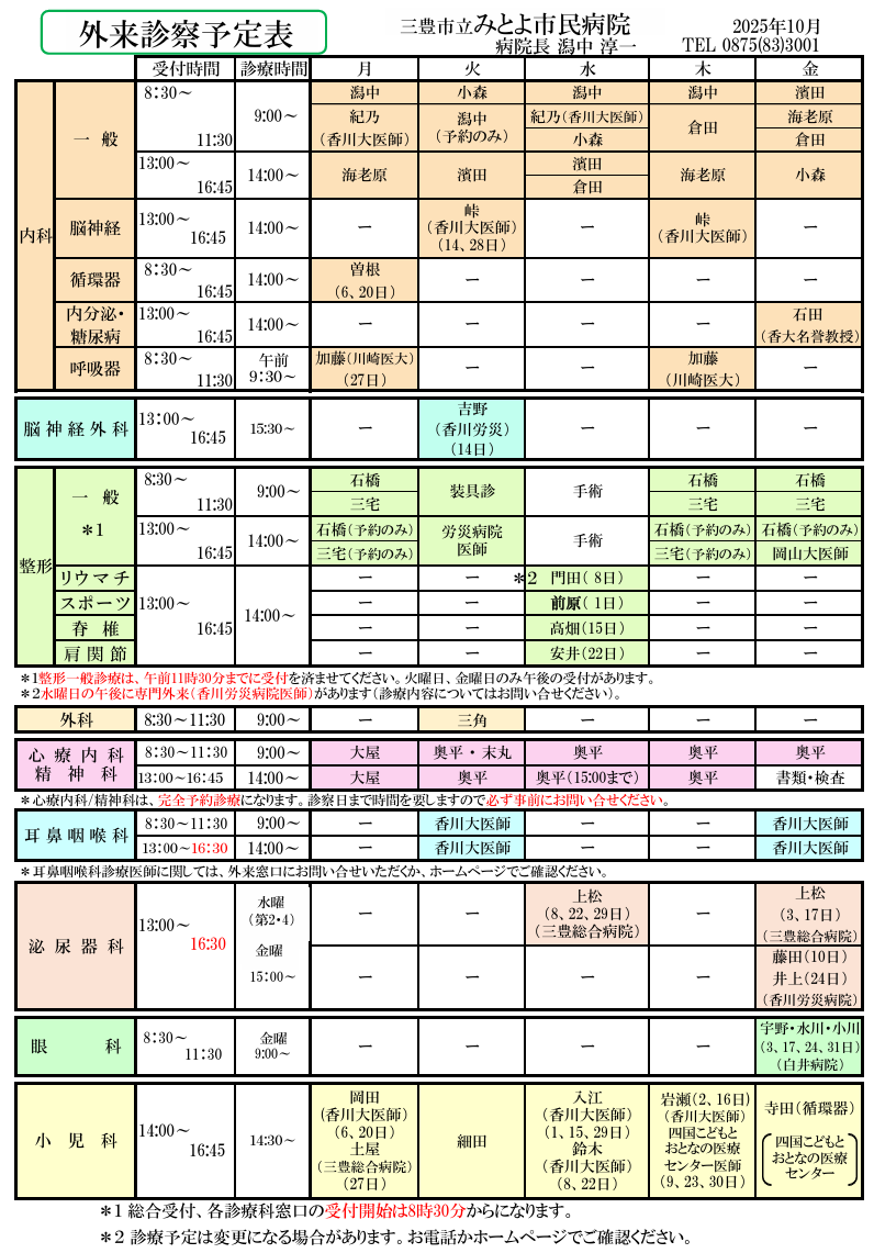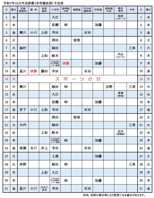 ※ 手術のため水曜日午前中の整形外科一般外来の診察はありません。